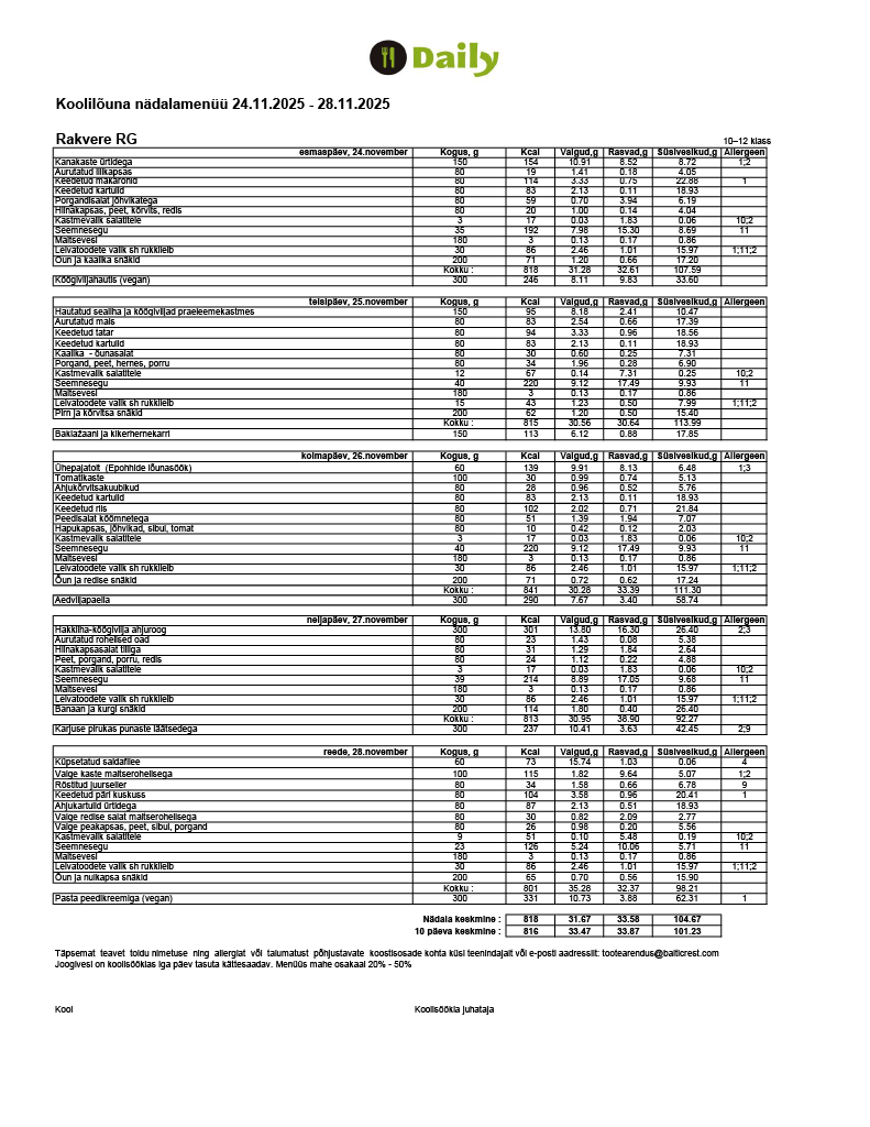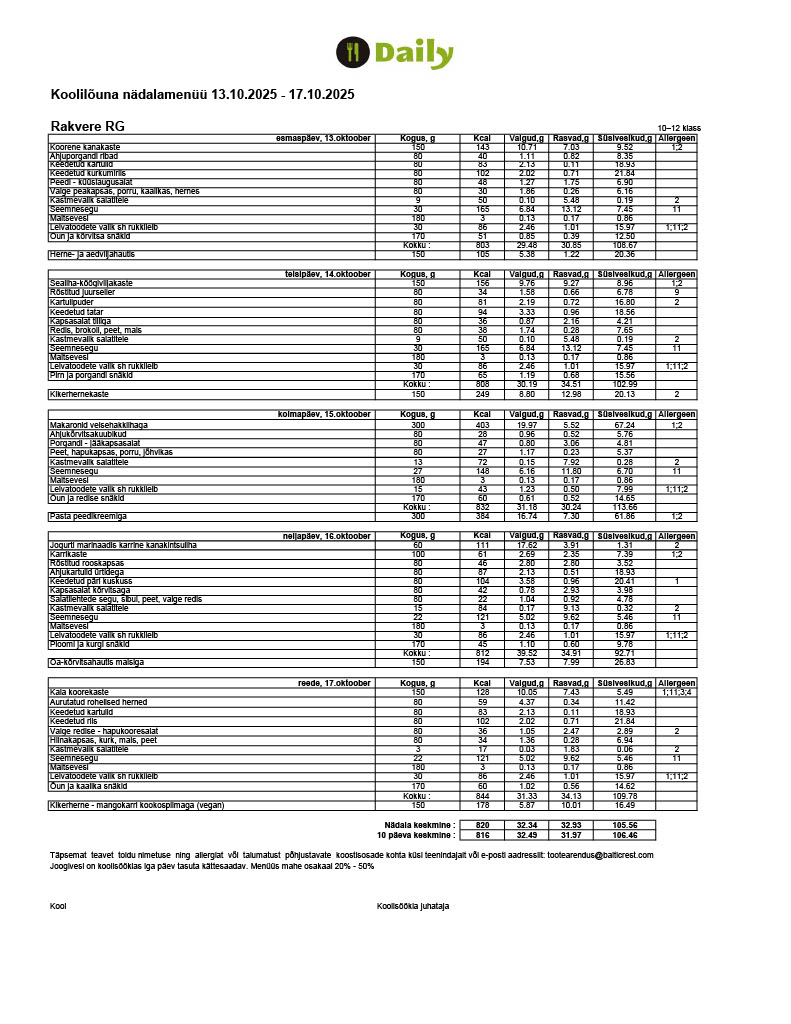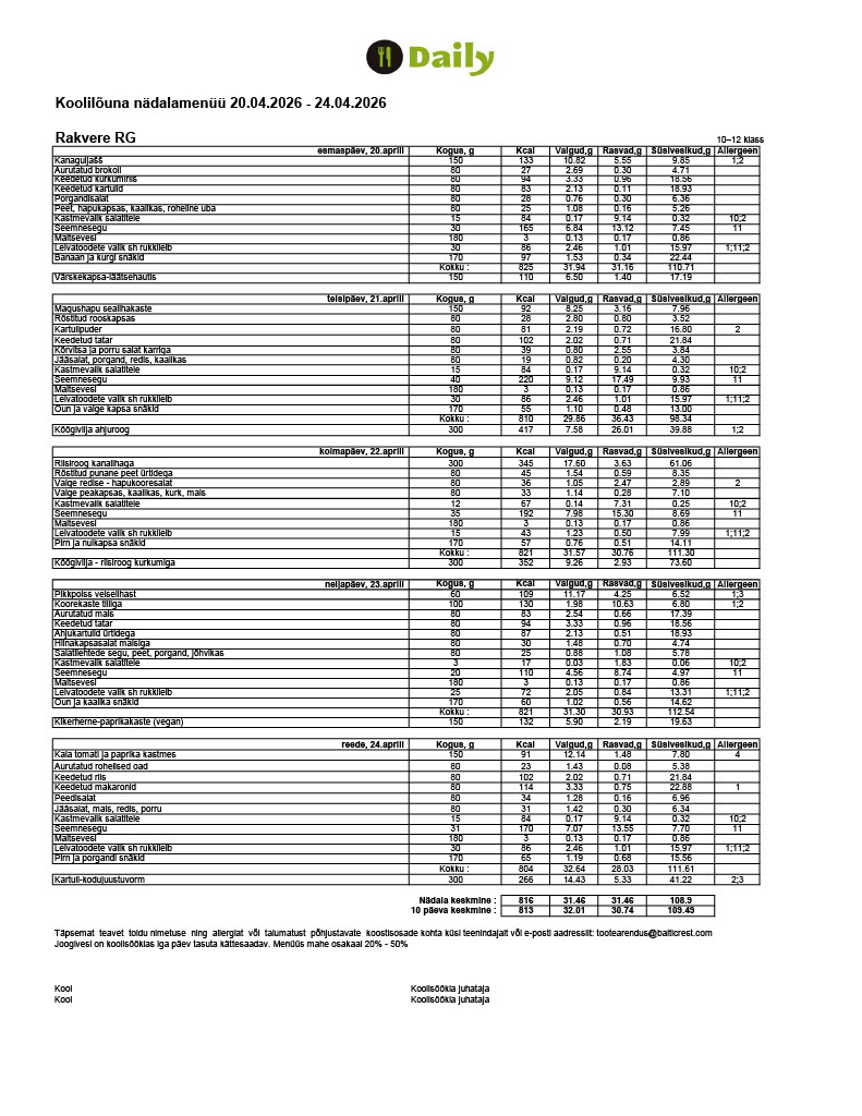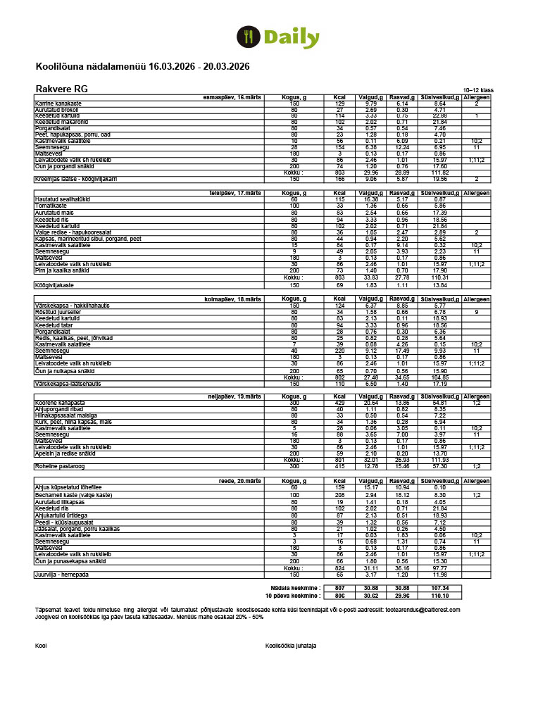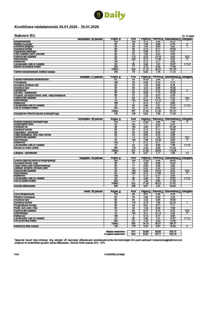 Meie toitlustajaks on Baltic Restaurants Estonia AS, kes pakub riigihanke tulemusena kahe õppeaasta jooksul teenust ka teistes Rakvere munitsipaalkoolides.